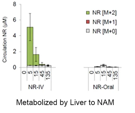 “Orally delivered NR and NMN are converted into NAM before reaching the systemic circulation.” (19)