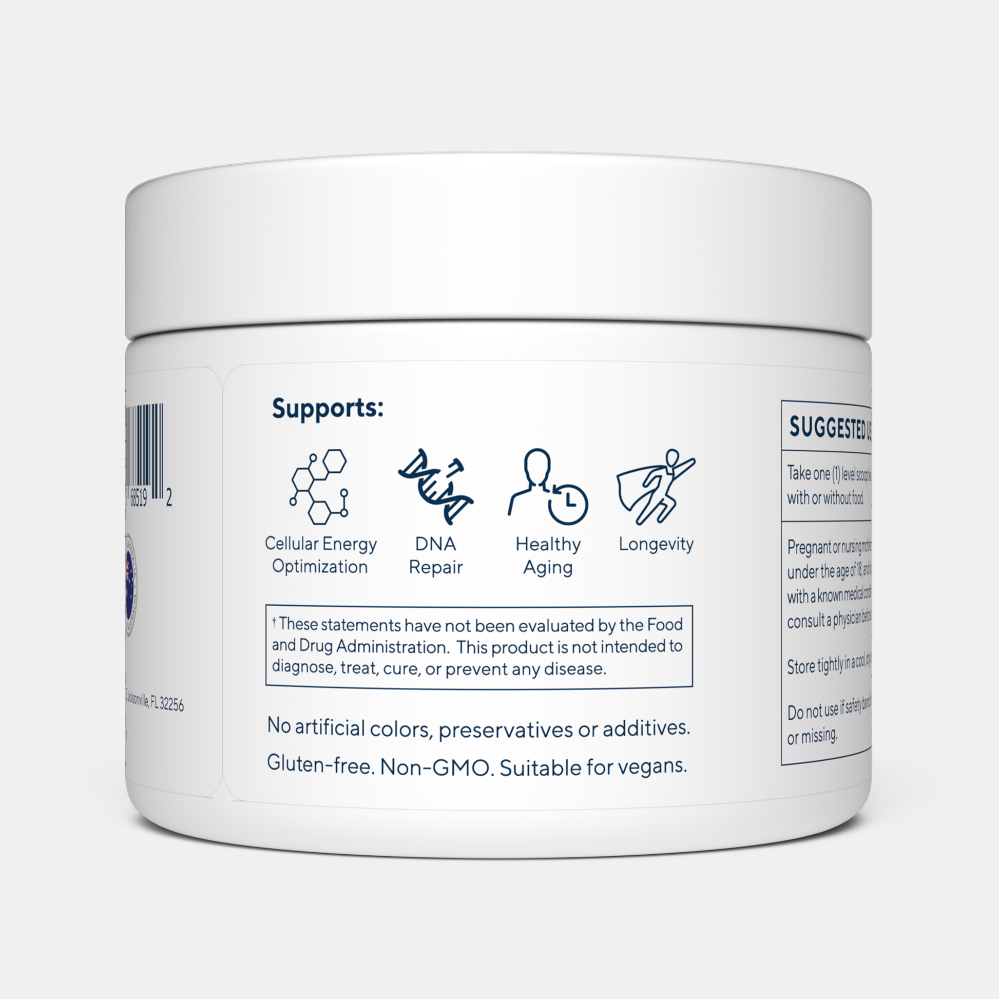DNA Repair: NAD+ supports the function of enzymes called PARPs (Poly (ADP-ribose) polymerases), which repair DNA damage caused by oxidative stress, radiation, and environmental toxins. Maintaining DNA integrity is essential for healthy aging and maintaining function.