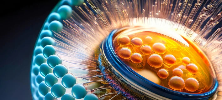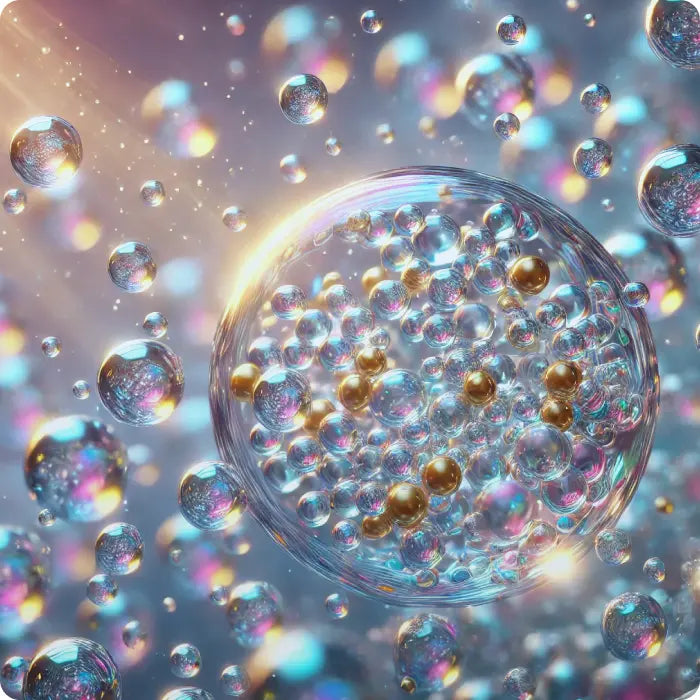 Liposomes are microscopic spheres made of phospholipids: the same material that forms your cell membranes. When these dry, powdered phospholipids are mixed with water, they spontaneously organize into protective bubbles that can encapsulate nutrients and deliver them more effectively to your cells.