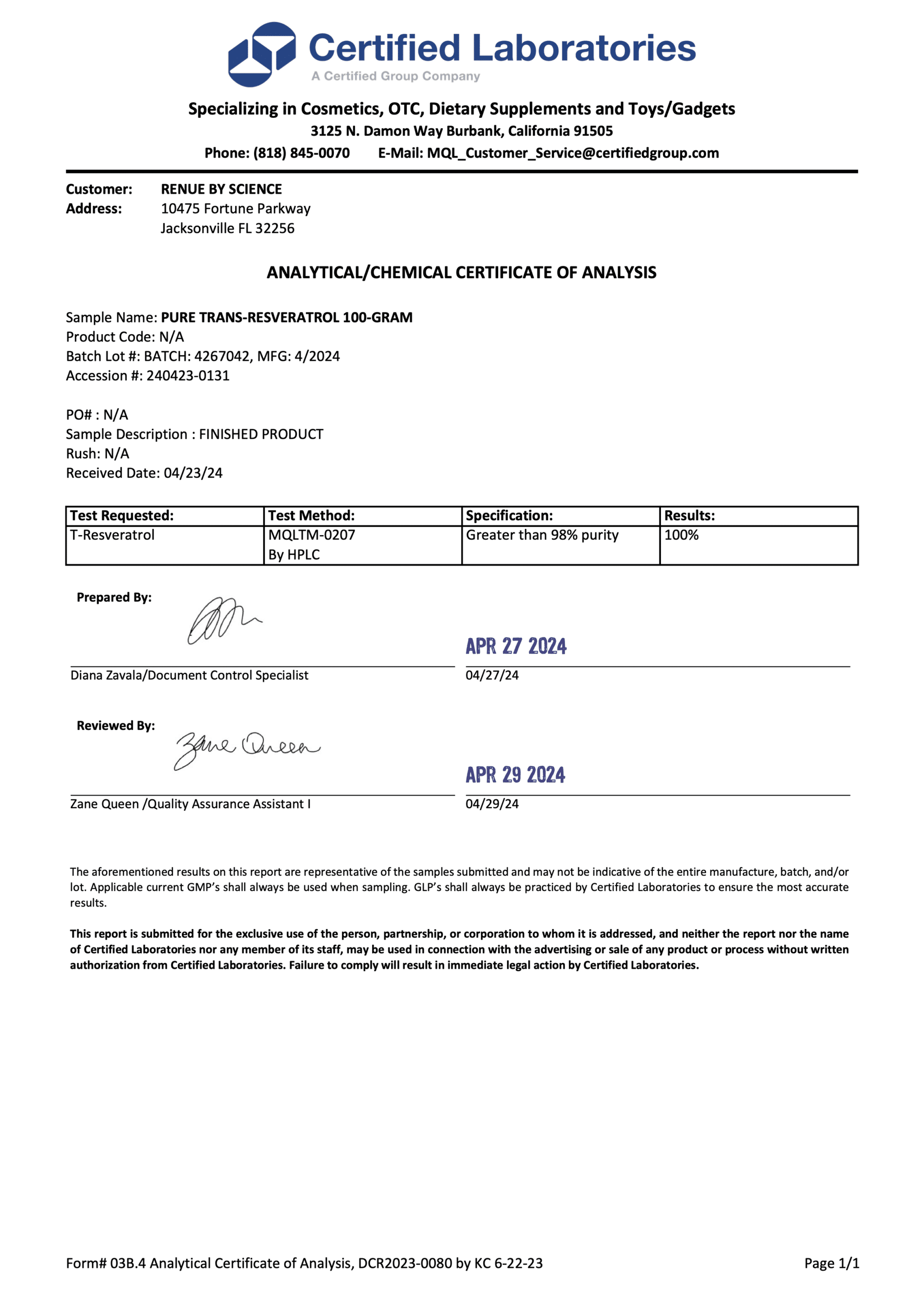 Our products are tested in ISO-Certified and cGMP certified labs for ultimate quality, purity and potency.