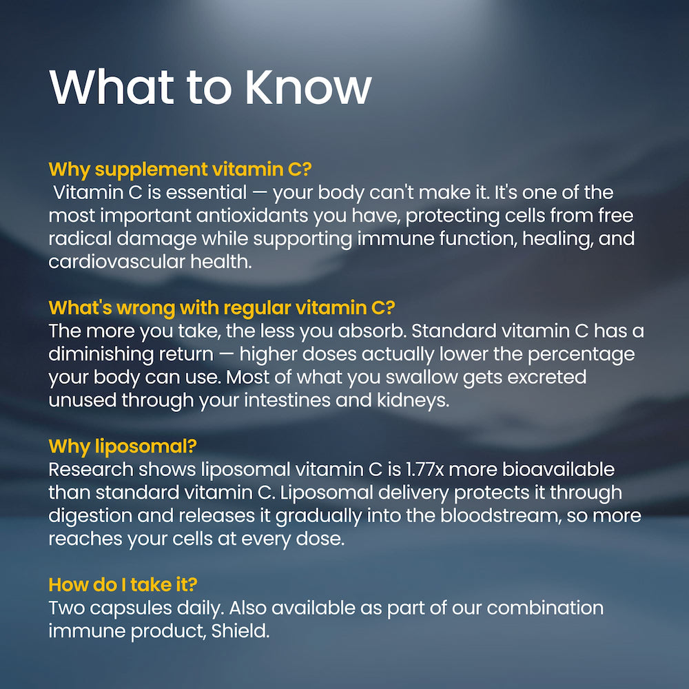 Studies in humans have shown that liposomal Vitamin C is absorbed more effectively than standard Vitamin C: